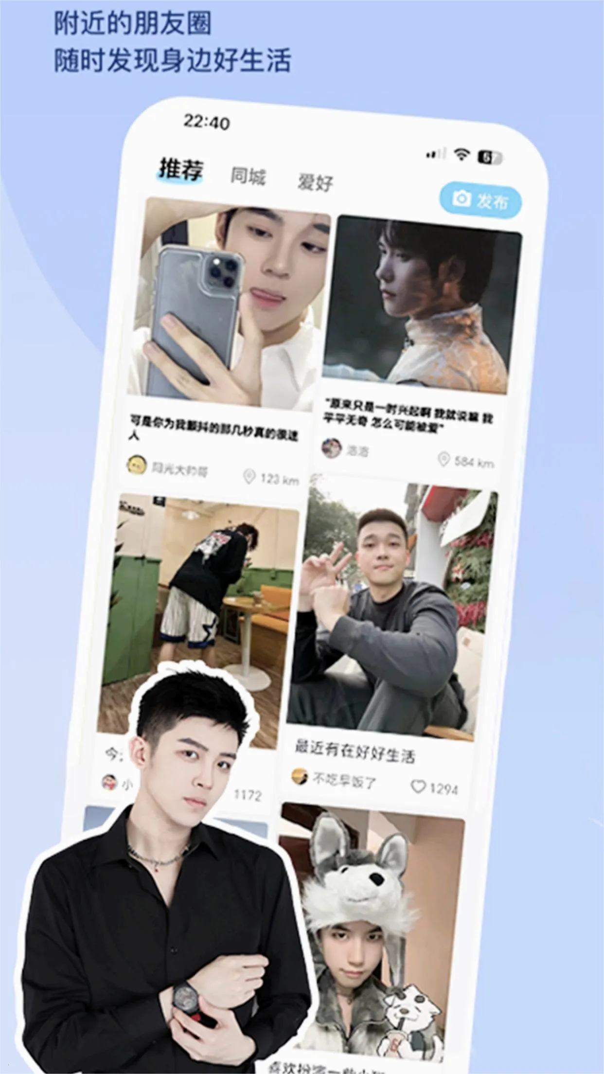 与他app是新一代彩虹平台,是全网超一千万单身帅哥的共同选择!在这里,你能通过文字、语音、视频等多种方式与同城附近帅哥聊天互动,已有数百万用户在此快速搭讪找到心仪之人。软件功能超棒,所有信息匿名,充分保护人身安全,让你放心使用。它能提供不同生活方式,助你探索多样交友玩法,还能按多种条件找合适的人,不论年龄性别。手机版特色十足,可随时随地找附近有趣灵魂,智能匹配机制让你轻松遇见有缘人,庞大且高质量的用户基数是脱单绝佳选择。你能主动加欣赏的人为好友,抓住缘分。还能发布社交动态吸引关注,感兴趣的可添加关注或私信。不想再孤单无聊,就赶紧下载与他app,体验不一样的交友乐趣,开启与他谋局短剧般精彩的交友之旅吧!