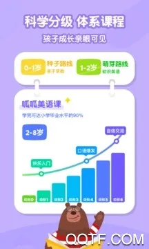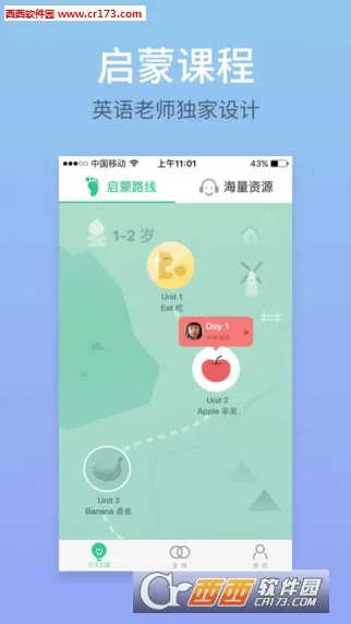 2. 拥有专业英语老师独家设计的启蒙课程,采用情景主题TPR等多元化教学方式,设计分龄英语启蒙路线图,操作简单,让家长轻松在家教英语。