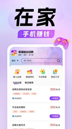 懒人兼职是一款为大学生、宝妈、白领等群体提供安全靠谱丰富招聘服务的兼职软件。它有海量兼职信息实时更新,覆盖7个大类近百种岗位,所有岗位5重审核确保真实优质。手机招聘岗位多样,能满足多种在家工作场景,还有技能副业岗位。平台多重保障,免费无收费,商家认证杜绝虚假,客服7*12小时在线处理问题。在这里可根据工资职位筛选查询,通过多种途径获报酬。总之,是个找兼职的不错选择,值得下载使用。