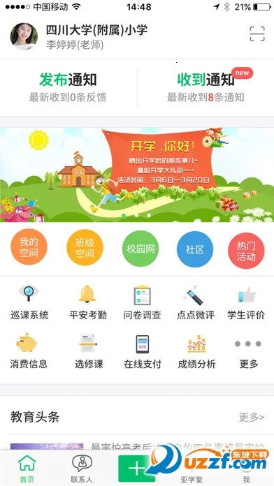 针对不同需求打造个性化专属操作面板,提供语音图文信息动态交互、通讯录、班级群、班级空间、教育咨询、名校学习资源等多种功能。