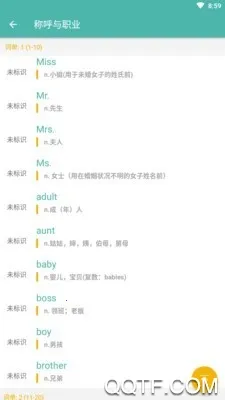 2. 提供多种背词模式,如随机背词、练习、拓展、查词、复习等,还将单词按情景、等级、考试等分类,方便背诵理解。