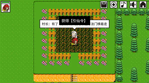 3、在我们家隔壁可以知道村长在花丛中,我们就直接往最左上角的花园去,见到了村长,村长会给你朵花,你只需要把花送给在井附近的如花然后再回村长那报道就可以获得一个能开启万法门的道具。